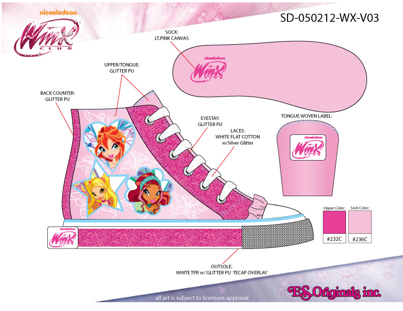 Voici des photos de projets de chaussures Winx Club réalisées pour 2013 avec des images promos au design de Nickelodeon, collection Believix. Reste à savoir, si ces chaussures verront le jour.